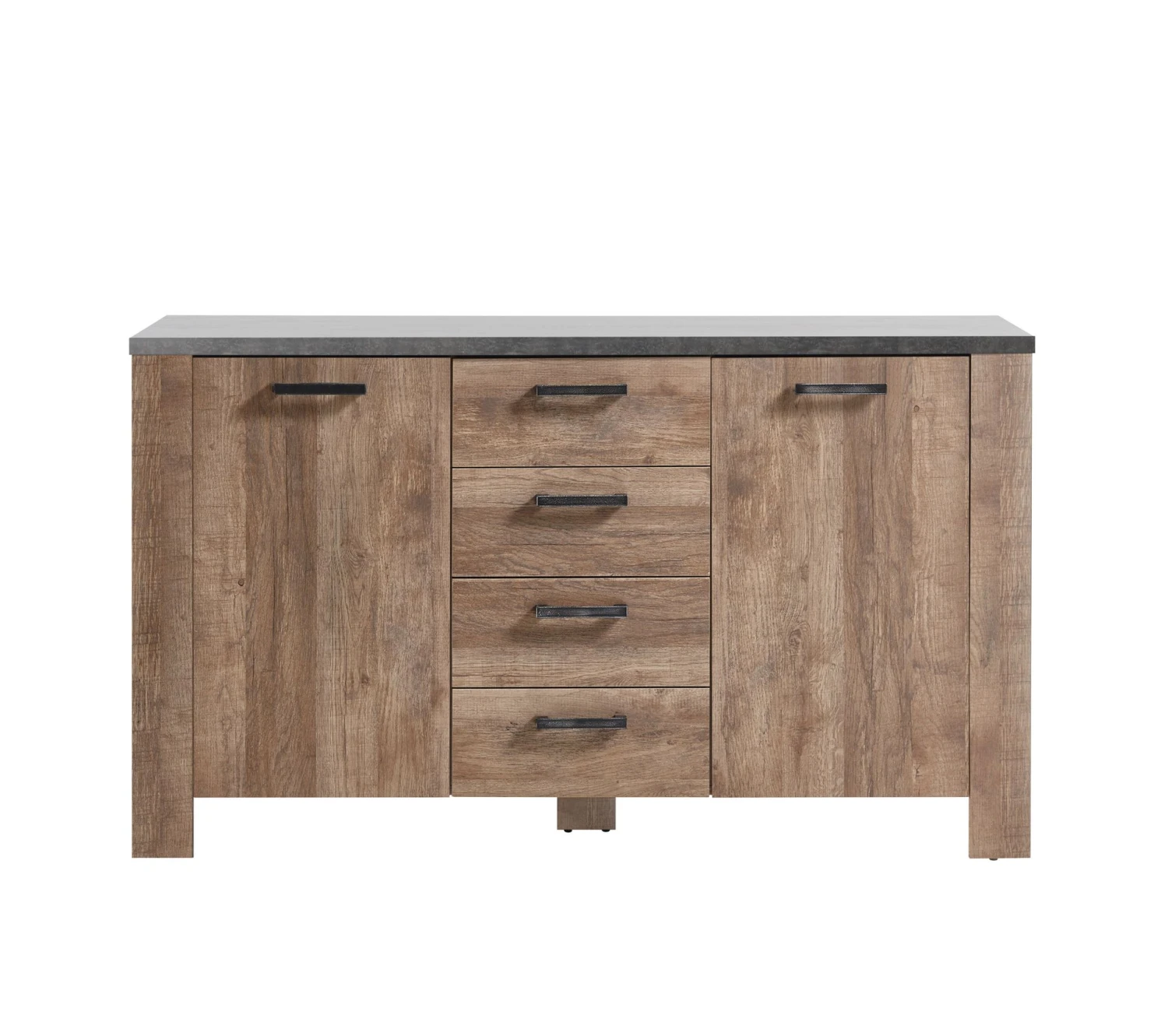 - Structure en panneaux de particules décors imitation chêne vielli, plateau dessus aspect béton anthracite, épaisseur 28 mm