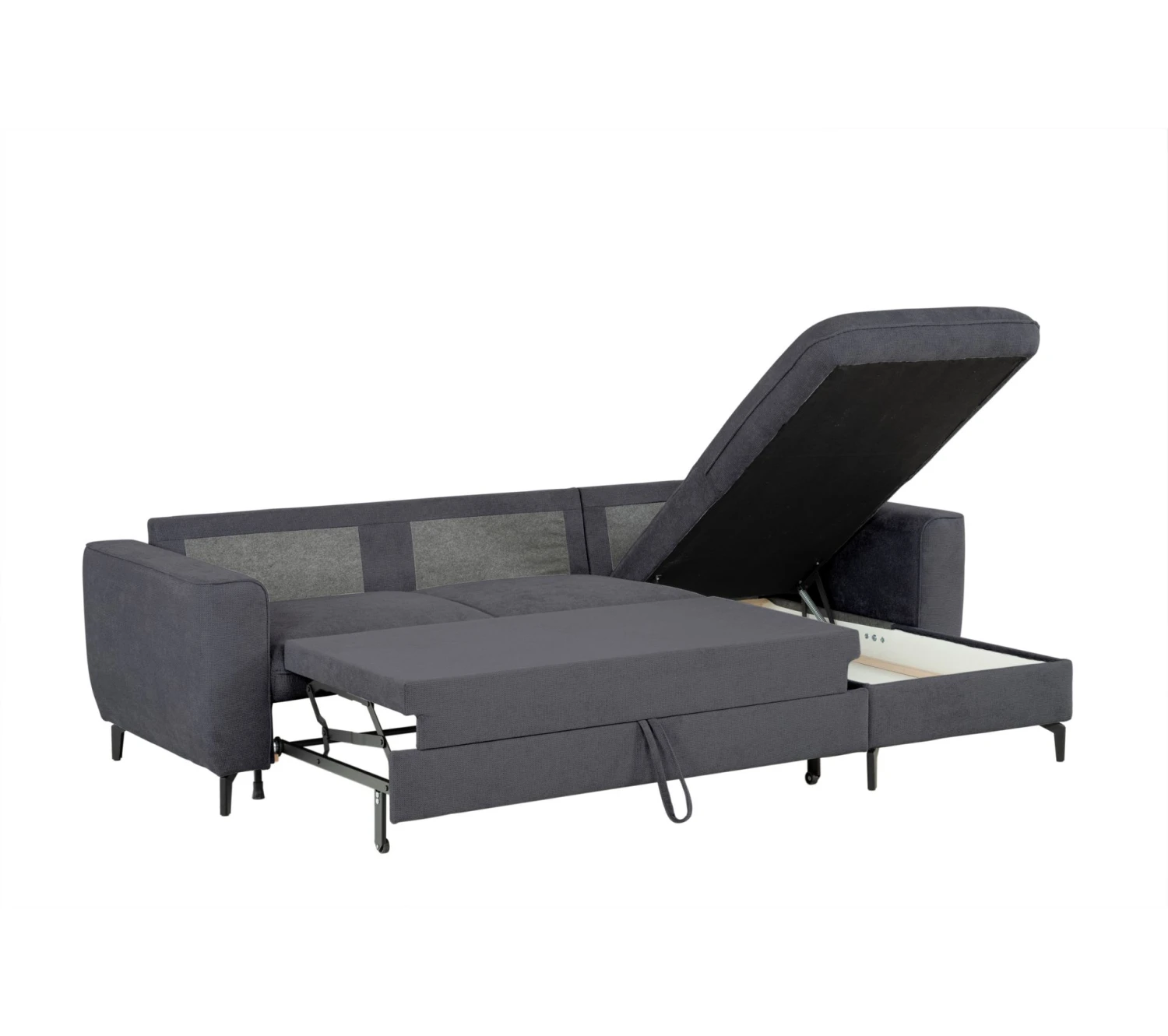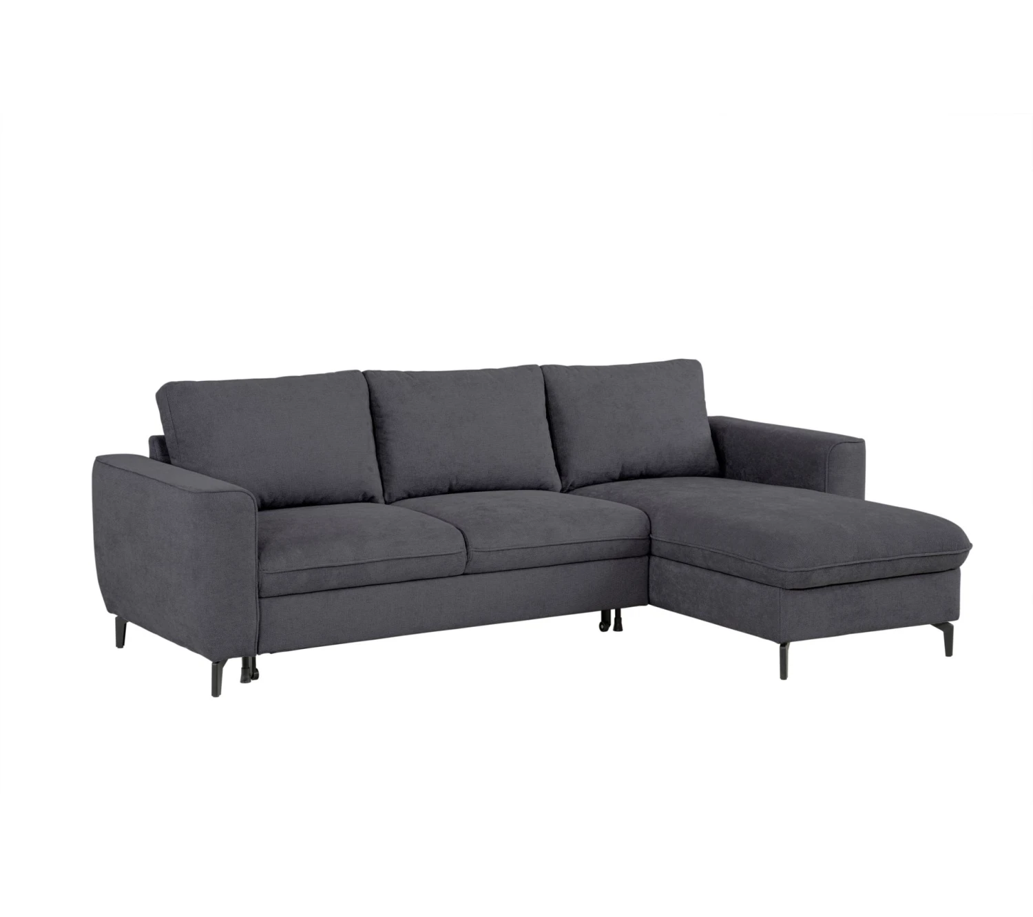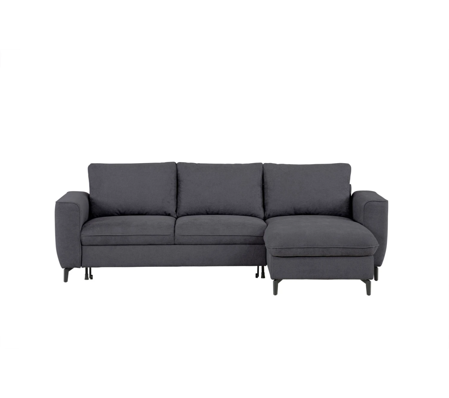 Pratique, ce canapé d’angle est équipé d’une méridienne réversible que vous pourrez placer à droite ou à gauche, selon l’agencement de votre pièce. Elle renferme un coffre de rangement qui se montrera utile pour disposer des coussins ou des plaids. Facile à déployer, le lit d’appoint s’installe en tirant sur la languette sous l’assise.