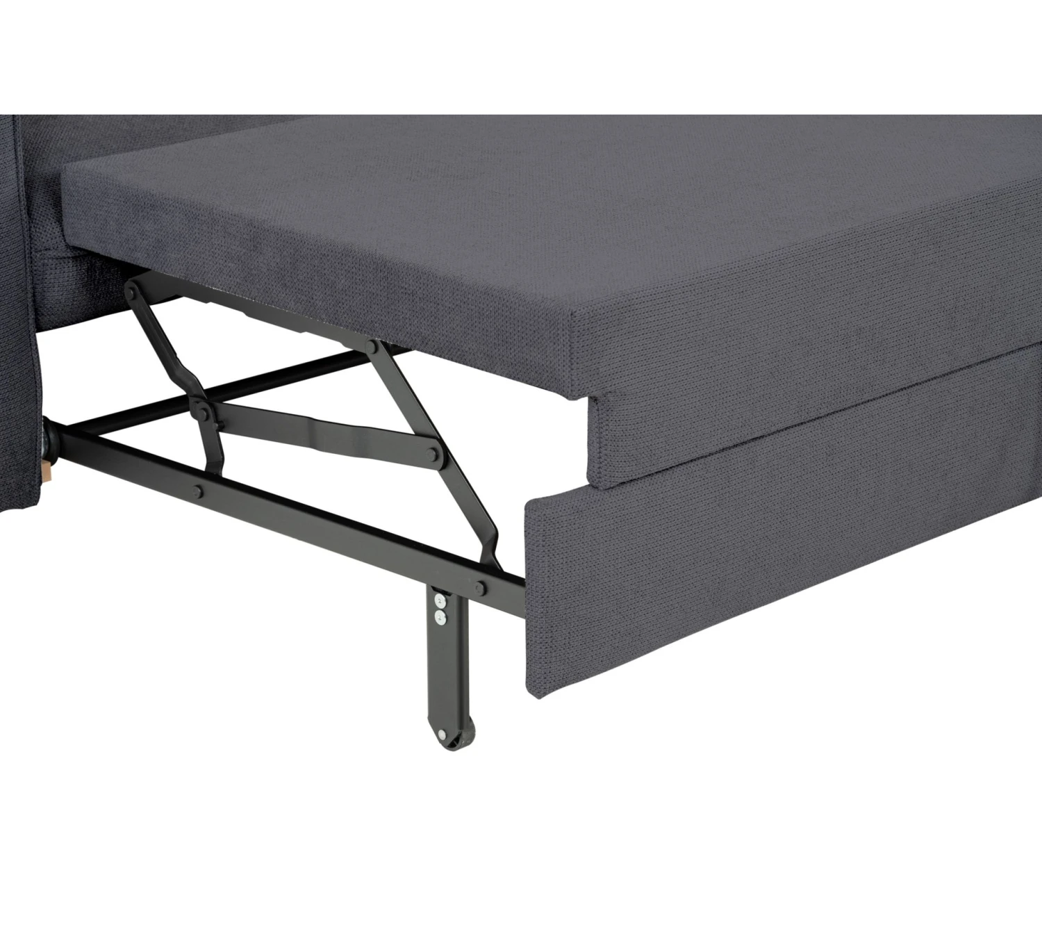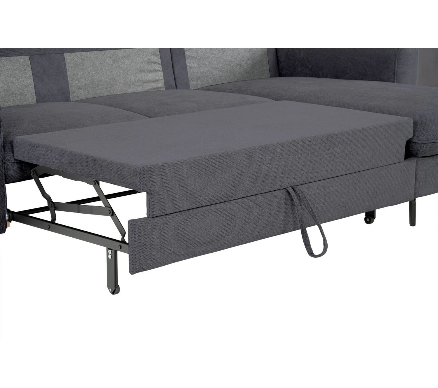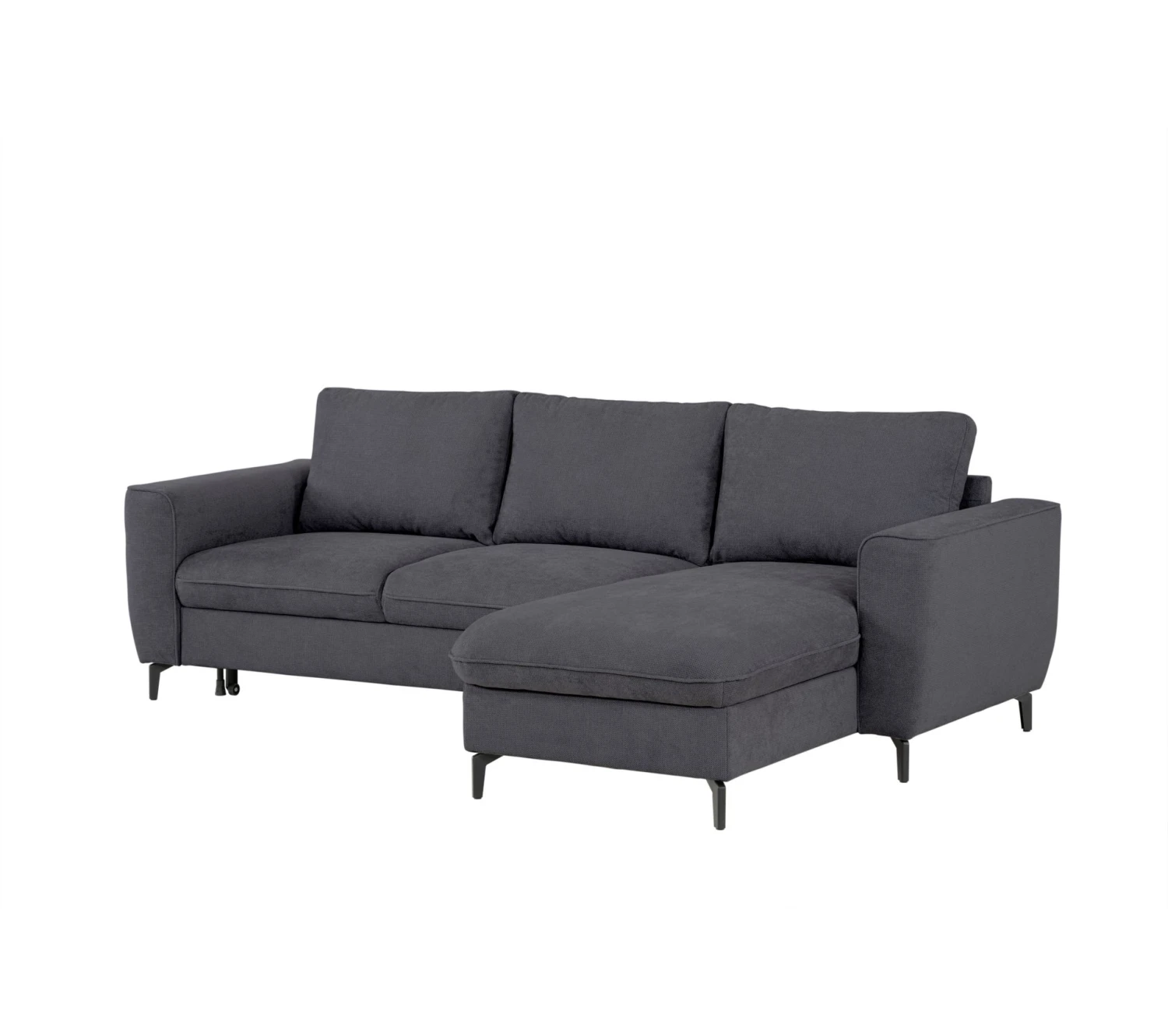 Pratique, ce canapé d’angle est équipé d’une méridienne réversible que vous pourrez placer à droite ou à gauche, selon l’agencement de votre pièce. Elle renferme un coffre de rangement qui se montrera utile pour disposer des coussins ou des plaids. Facile à déployer, le lit d’appoint s’installe en tirant sur la languette sous l’assise.