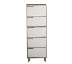 Vous aimez le contraste des matières et des couleurs ? Optez pour cette commode imitation chêne et blanc d’inspiration nordique. Son design est sobre et compact. Les 4 pieds obliques donnent une charmante touche vintage. Cette commode 3 tiroirs se marie à merveille avec du mobilier blanc ou en bois clair.