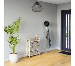 La commode LANA se distingue par sa structure en bois qui abrite 6 tiroirs en tissu à l’effet lin. Son alliance de couleurs claires et neutres s’accorde sans aucune difficulté à votre décoration d’intérieur. Cette jolie commode 6 tiroirs accueille volontiers des sous-vêtements, des produits de beauté ou des jouets.