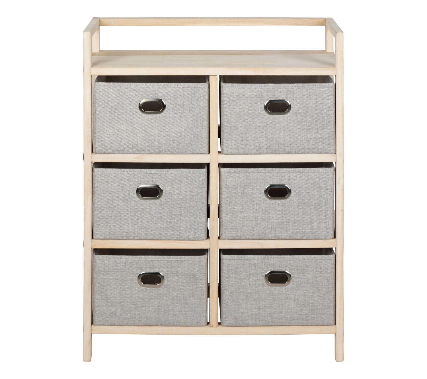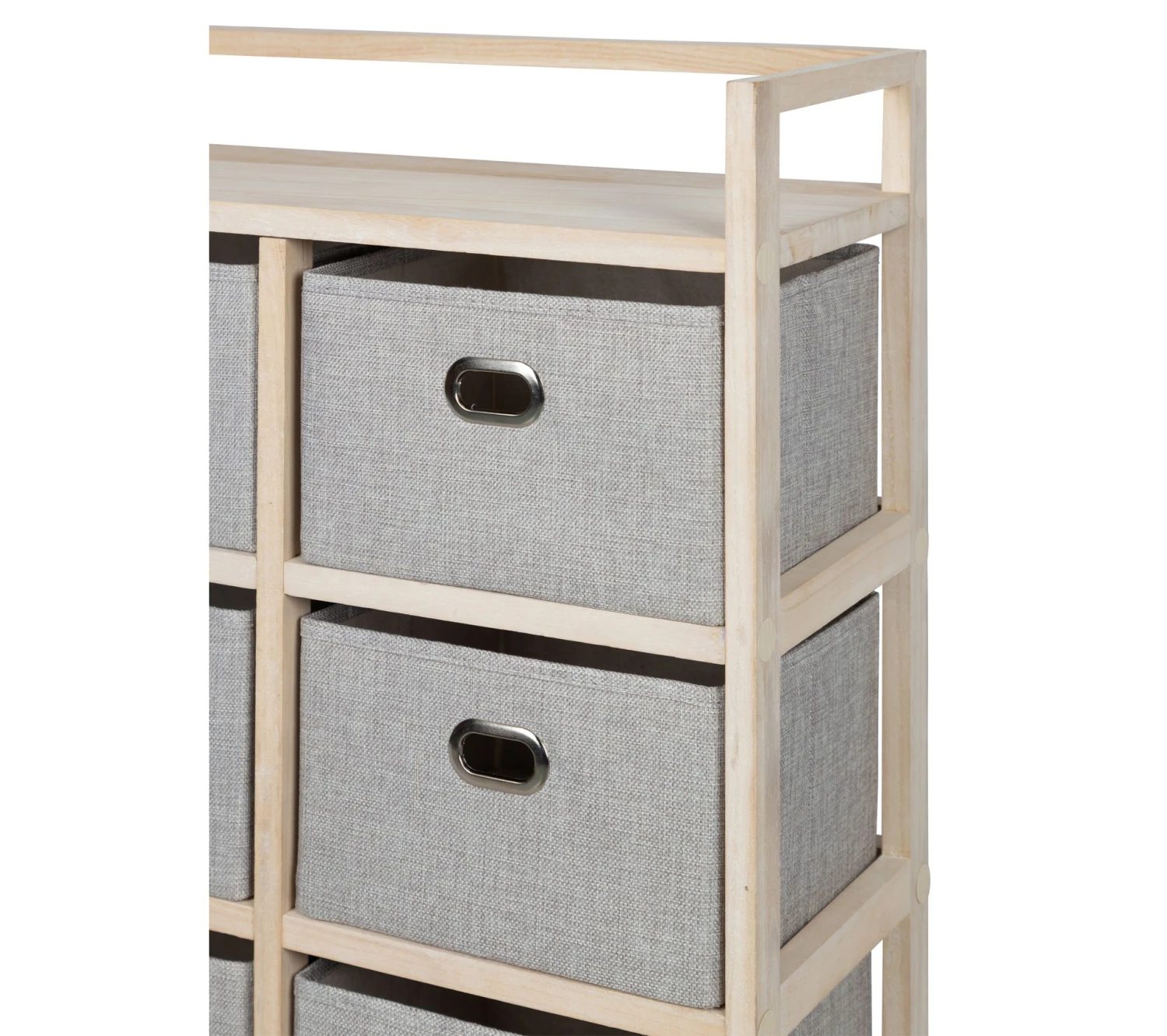 - Structure Meuble d’appoint 6 tiroirs en paulownia, tiroirs en tissu effet lin.