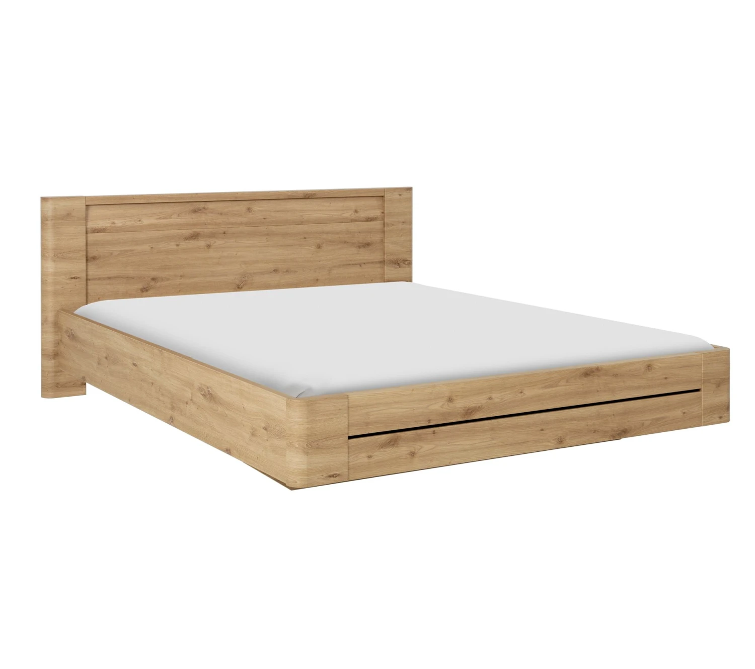 L’esprit scandinave est au rendez-vous avec ce lit effet chêne. Constitué d’une structure robuste en panneaux de particules, il revêt du papier décor imitation bois. Pour un aménagement coordonné, associez ce lit à une coiffeuse et une commode en bois naturel. Installez un tapis de couleur contrastée pour ajouter une touche douillette dans votre espace.