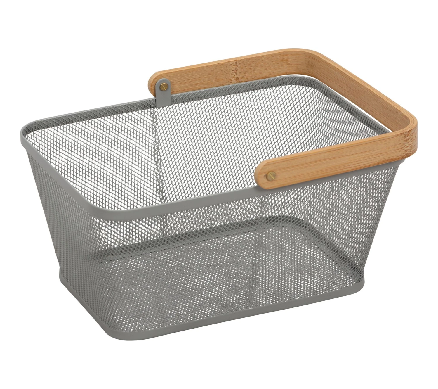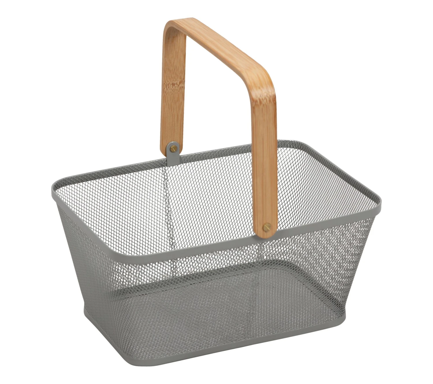 Avec son anse large en bambou naturel, ce panier vous permet de ranger et transporter facilement vos livres, vêtements ou menus objets. Avec sa structure en fer, ce panier de dimensions L. 30 cm – l. 22 cm- H. 14 cm est robuste et peut supporter des charges assez lourdes sans se déformer. Grâce aux petits trous de son corps principal, ce panier LOKI est aéré, il pourra donc servir à stocker des fruits et légumes dans une cuisine, par exemple. On peut également voir à travers et contrôler son contenu d’un coup d’?il, sans avoir à le vider.